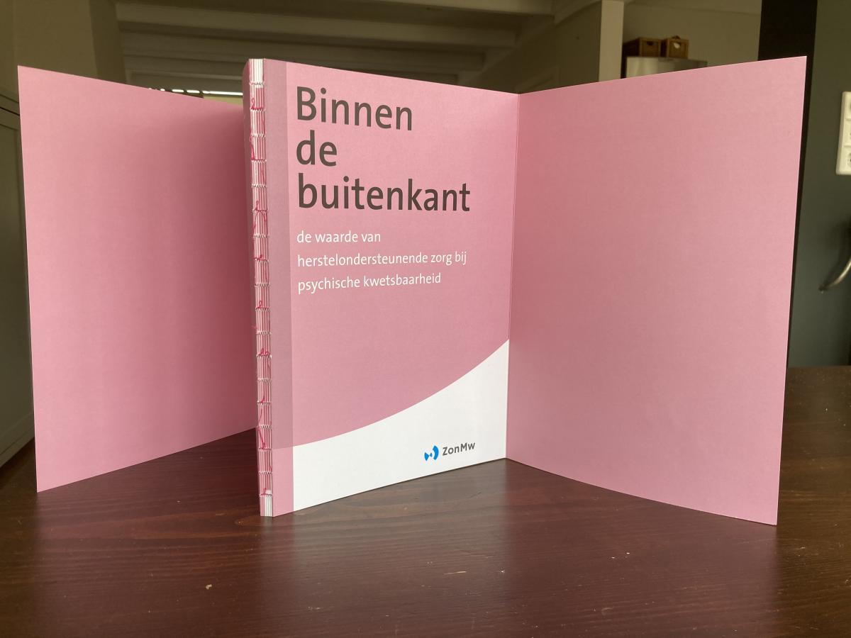 Het boek Binnen de buitenkant gunt de lezer een kijkje in het hoofd en hart van mensen die vastliepen in zichzelf. Hun verhalen worden gelardeerd met persoonlijke tips, ervaringen van professionals en recente inzichten uit enkele, door ZonMw gefinancierde, projecten. Daarnaast is een apart hoofdstuk te lezen over het ontstaan en de visie van de herstelbenadering.